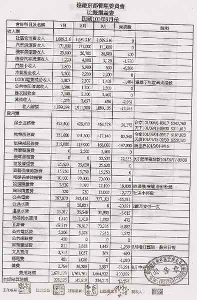 101年9月 社區財報
