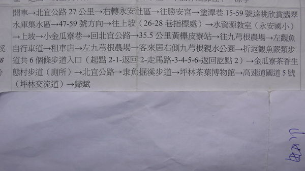 金溪露營區單車租借130/2時自行車道→鐵馬地標→保仁宮牌樓/渡南橋頭→右線小徑→溪畔自行車道→隶魚掘溪步道→魚梯水壩→折返還車