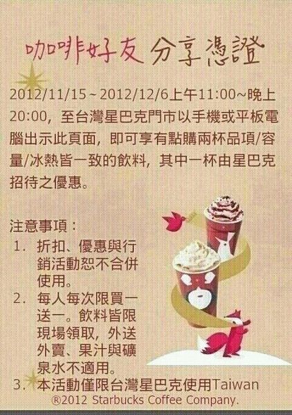 每人每次限買一送一, means ㄧ人購買{:7_334:}1杯 , 得到2杯 , 再把手機交給排在後面的朋友, 朋友show出此畫面 , 就可一樣購買{:7_334:}一杯 , 得到2杯{:9_590:}