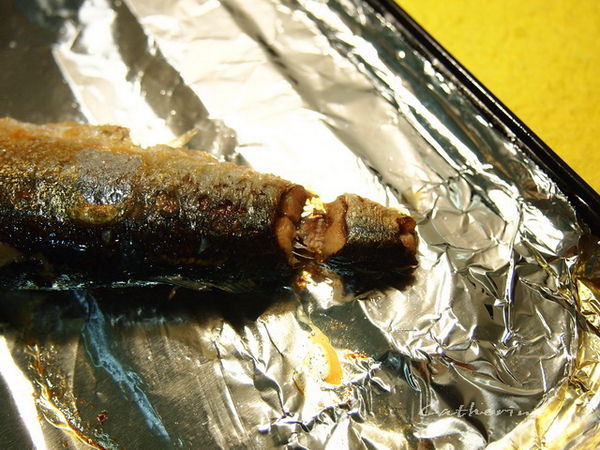3. 烤或煎皆可,魚熟了之後可以明顯看出之前魚尾處理的樣子