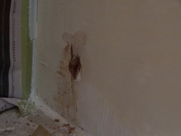 是因為拋光磚重工兩次,地面含水過高所以輕隔間牆狂吸水囉~!