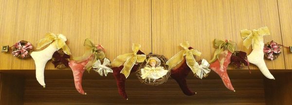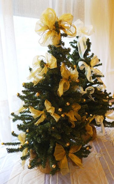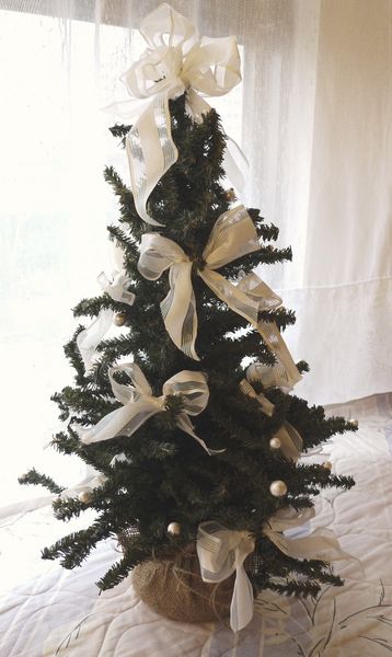 小耶誕樹加珍珠 就可營造節日氣氛 使用B組 (象牙緞面直紋紗)
