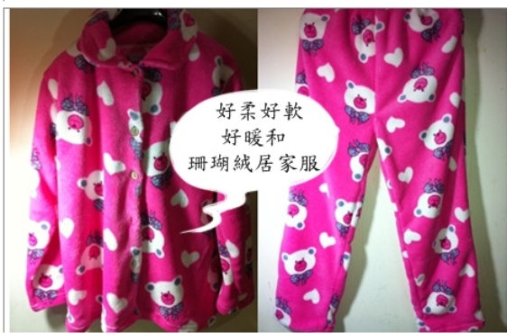 可愛小熊珊瑚絨女裝居家服(睡衣+睡褲套裝組)