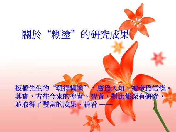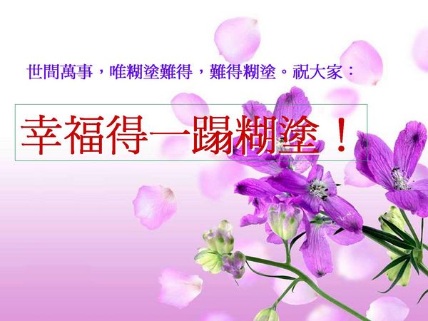 ~輕安~ 發表於 2012-12-17 09:59 大智若愚真修行,虛懐若谷真功夫。世間萬事唯糊塗難得。