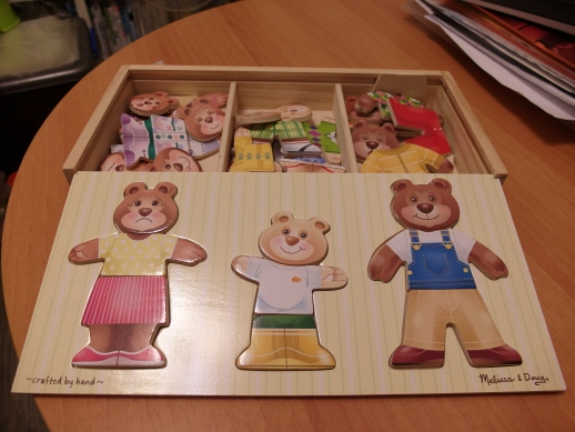 3.幼兒木質拼圖(熊爸媽及小熊的頭部、上半身及下半身均可組合搭穿)...NT$200<-------已售出