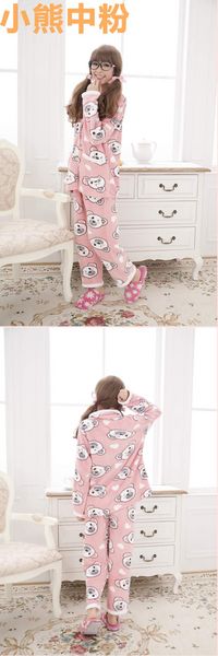 女款秋冬季珊瑚絨兩件式保暖睡衣(衣+褲)多色·多碼