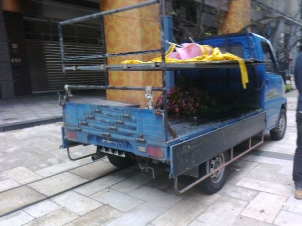 走到大成路在公車總站預定地前又有汽車開上人行道...