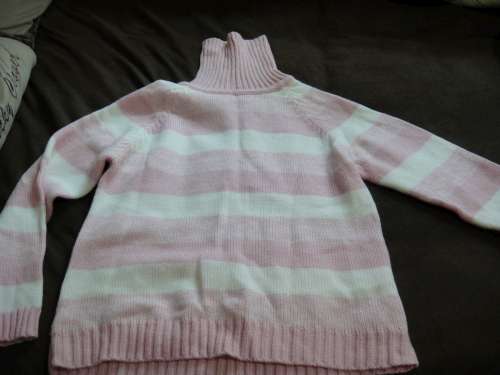 (五)粉色條紋高領毛衣尺寸:肩42cm胸44袖長63衣長54(價錢100元)
