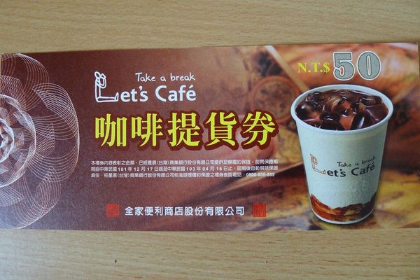全家咖啡提貨券,每張面額50元,無期限~