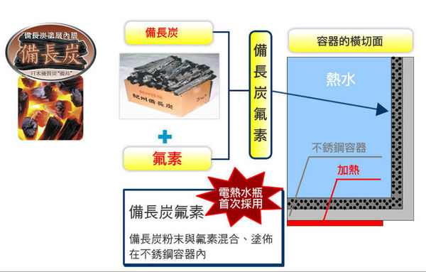 (2) 備長炭塗裝內膽,開水滋味更甘甜