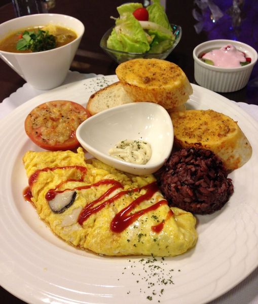 那天去吃早午餐覺得還OK!餐前沙拉醬汁微酸,很開胃!主餐我點的是紅咖哩,咖哩味道很夠很適合下飯,但因為我點的是早午餐所以~~~好像跟我點的brunch有點不搭!我覺得紫米飯可以換成另一種麵包,這樣就可以沾著吃,不然麵包和紫米飯份量較少結果吃完時咖哩還剩1/3,很可惜!副餐還有青江菜和魯冬瓜這兩樣在brunch的餐點裡出現也有點怪,我建議可以改成火腿或培根!點心的千層蛋糕不OK,口感不好,蛋皮部分不夠綿軟,有點像吃粿的感覺!我點的飲料是伯爵奶茶~茶味濃厚不錯喝!老公點的是拿鐵咖啡有點糟,咖啡豆品質不太好感覺浪費了那台貴鬆鬆的咖啡機!好像看到有人說排餐比較好吃,有機會再去吃吃看!