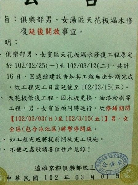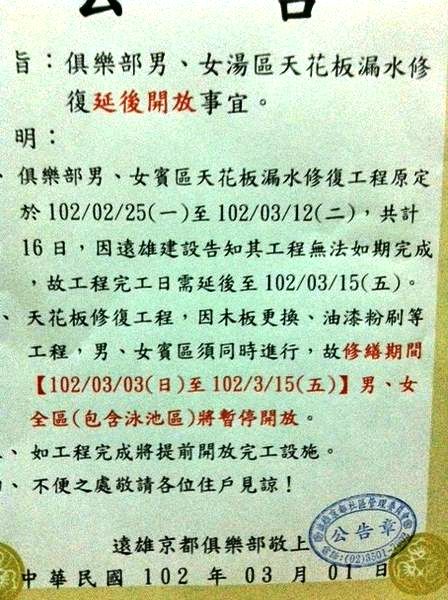 如果是: 雖然社區有公告貼在電梯,但至少遠雄京都網站應該同步不是嗎? 還是有公告有日期差距? 遠雄網站完全沒有此訊息!