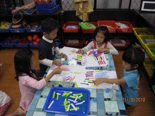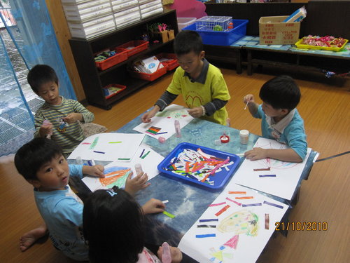 首先一定要讓小朋友知道班上的材料及工具放置處及使用的安全性宣導