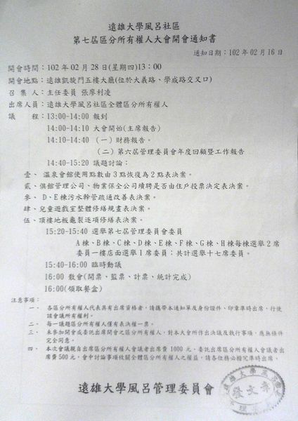 附件二:第七屆區分所有權人大會開會通知書