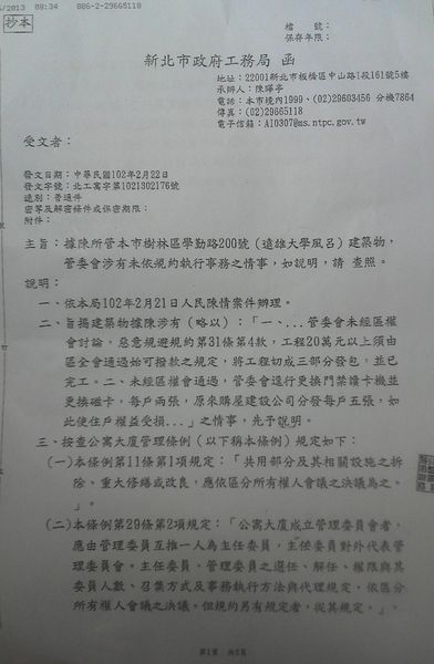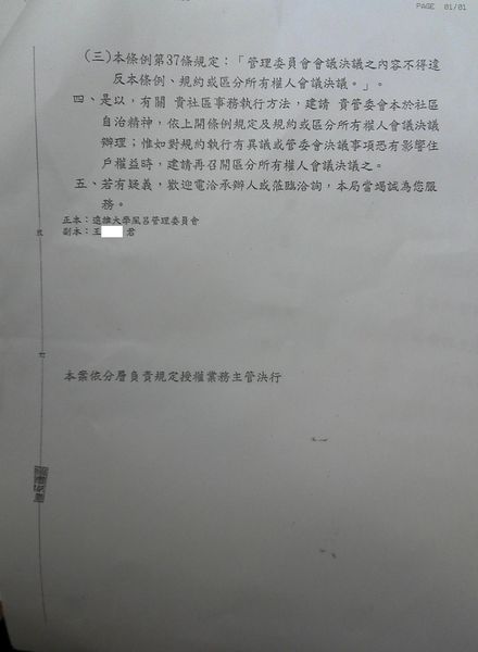 附件三:工務局函文糾正管委會未依規約執行事務