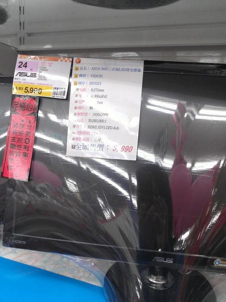 華碩ASUS VS247H 24型LED背光動態高對比液晶螢幕