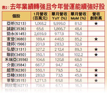 鎖定其一是,年報超乎市場預期者;其二是,從一、二月營收反應第一季季報,有機會登頂創造高峰者,會是此波大盤跌、個股不跌,大盤漲、個股跟著創新高的突出標的股。