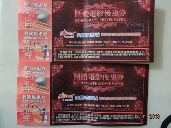美麗華電影票-附餐飲特惠券(大直.天母.台茂)