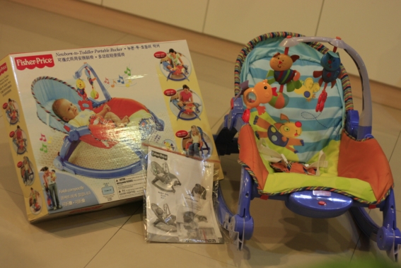 *有一隻小狗以及帶有一卷絨線的小貓,玩具桿可移動、可由搖搖椅轉換成固定座椅方便餵食。