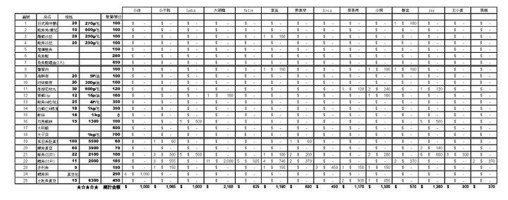 [tr][td]品項 [/td][td]規格 [/td][td]售價[/td][/tr]