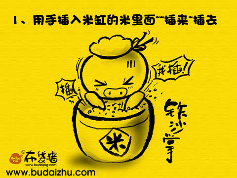 1、用手插入米袋的米裡面插來插去