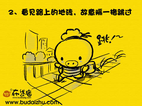 2、地上有磁磚時,故意一格一格走(腳不走出界,要完全在格內)