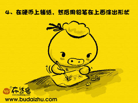 4、鋪張紙在硬幣上面,然後用鉛筆在上面塗,塗出印花來