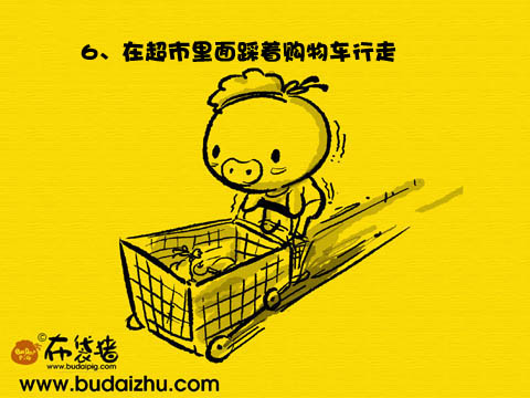 6、在超市裡踩著購物車行走