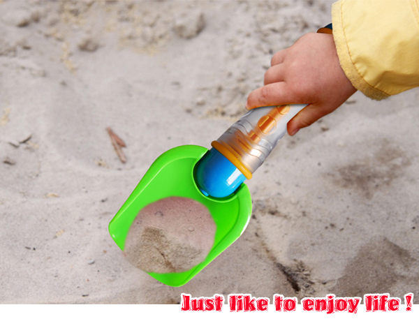 塑料光滑漂亮,透明的手柄+豆形易抓拿的把手設計,非常可愛惹喜,給多動的小寶寶,絶配。還可以摺疊前端,變成噴水模式喔,太實用了!玩沙玩水兩用!~~