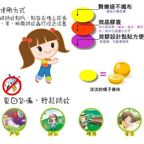 ◇堅持採用純天然香茅及薰衣草萃取物,背膠可貼在衣物各個角落或身上