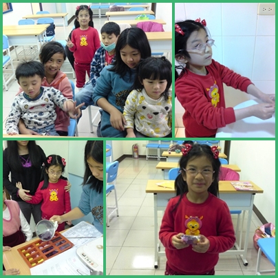 今天的上課內容有1.正確洗手及實做 2.皂中皂製作 3. 摺紙盒子
