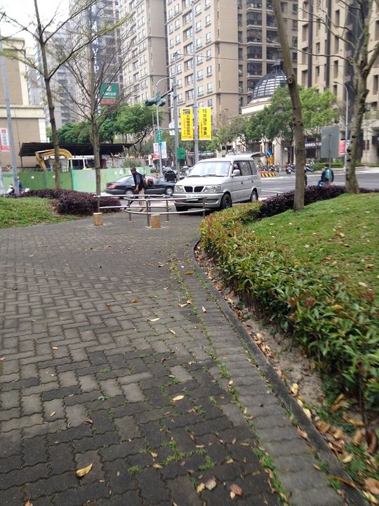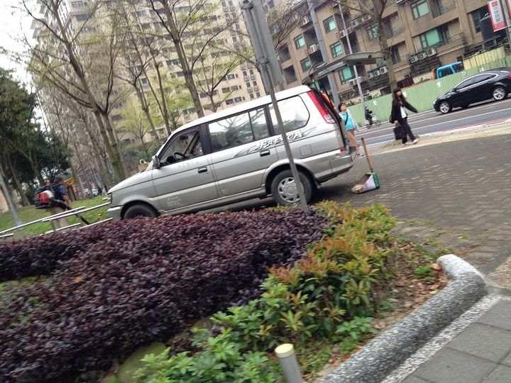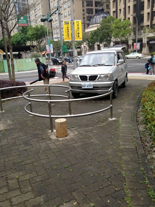 我是建議工作車開上人行道後應該放些警告標示
