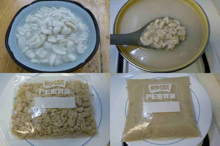 3 花生仁退冰後,加水煮開,並濾掉第一次的花生湯(比較油)