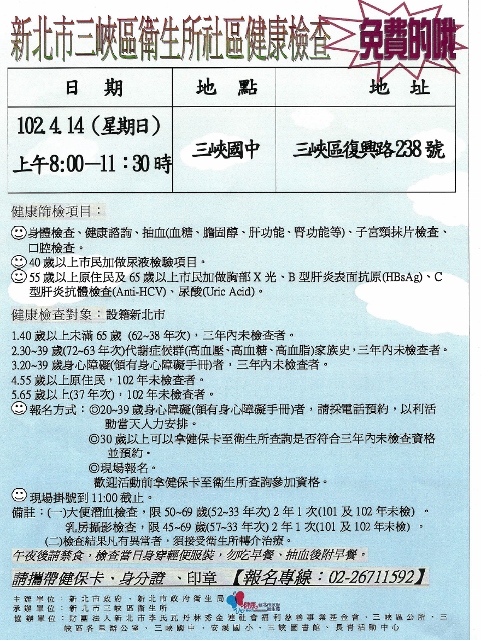 好康報報~ 衛生所社區健康檢查 (設籍新北市 - 免費)
