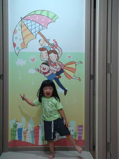 5.重點來了貼圖,我同事家沒有貼圖服務,所以第一次是我們自己貼的結果很慘{:4_137:}...不詳述了,一定要找專業的來貼,一般大圖輸出的店都會有合作的﹝老闆都會叫你自己貼比較好千萬不要相信ㄚ﹞,只是人工會貴一點是1200元﹝不過可能要先跟他說一下圖的大小工具才能帶齊全﹞,有需要可以跟我說我特別有留他的名片,自己貼花了三個人半小時貼不到一半失敗,師傅兩個人不到10分鐘搞定收工。
