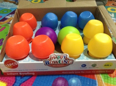 嬰兒保齡球遊戲組--9成新(包裝外盒拆封時破損),球瓶不倒翁設計不會亂滾、非常耐摔,因家中養貓咪不適合此遊戲,故出售,售價150元