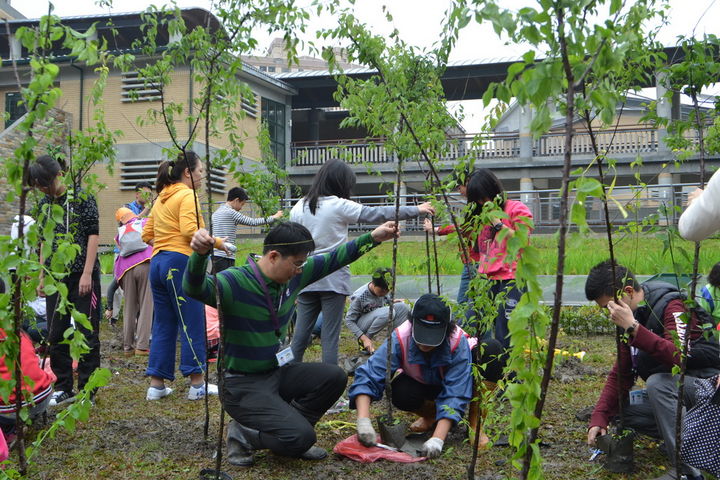 植樹前幾天一直下大雨,在全校師生的共同祈禱下,植樹當日上午天氣放晴
