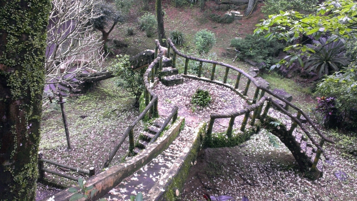 善息公園的溜滑梯佈滿桐花