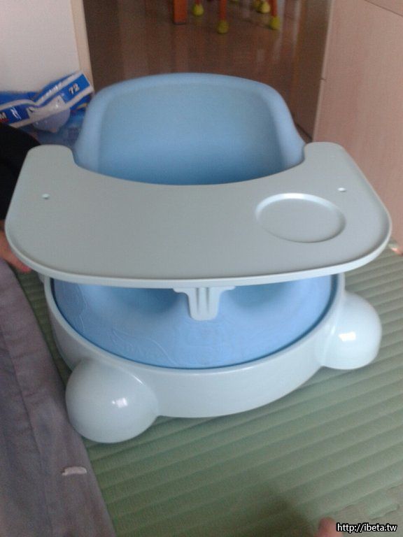 3~4個月大的嬰兒,脖子後仰時正好在椅背的地方,方便媽媽與寶寶互動,體積小、重量輕,外出攜帶方便、容易清潔,可當餐椅、洗澡椅及遊戲椅,用途廣泛。