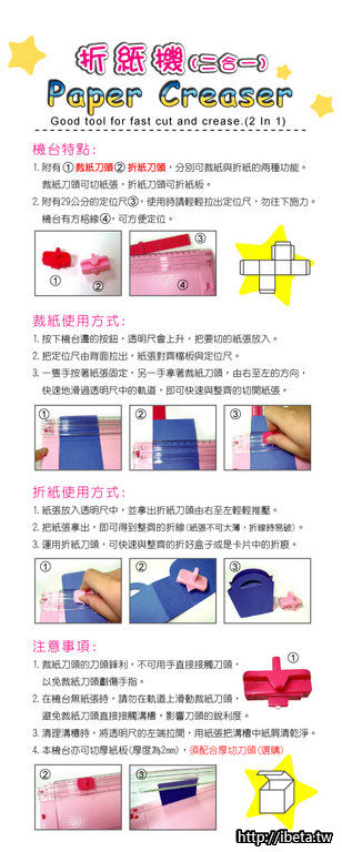 內附可卸式摺紙器(粉紅),與裁紙器(紅)各一