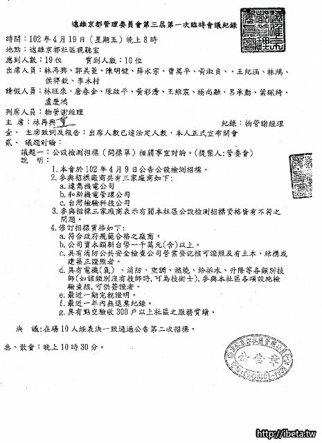 102.04.19第三屆管委會第1次臨時會議紀錄
