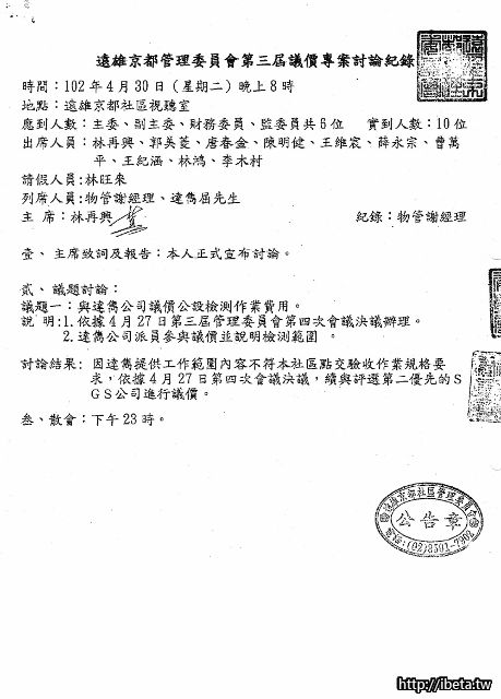 2) 在這3小時的時間裏, 委員們也做了很多很多的討論, 一致認為達雋公司不符合本社區點交驗收作業規格要求.