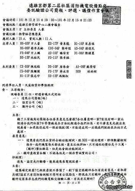 101.12.15第二屆管委會公設點交廠商評選會議紀錄