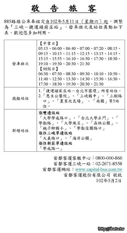 好康報報 ~ 885 公車公告