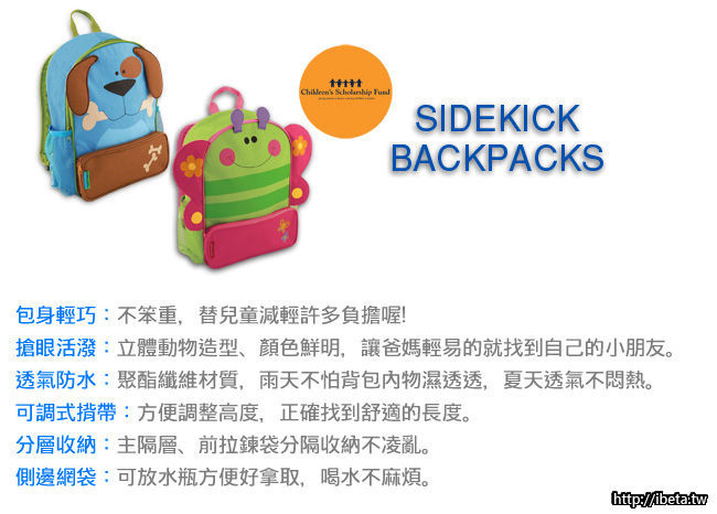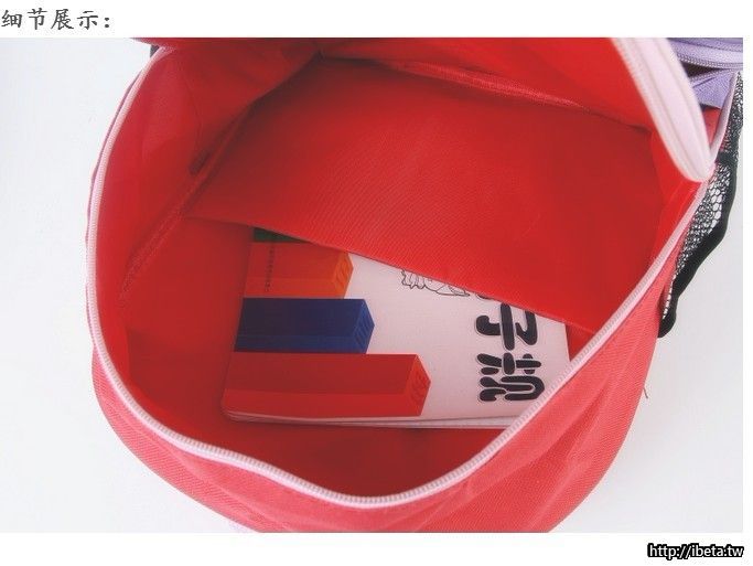 強烈推薦:一款讓我愛不釋手的超可愛的小書包,非常漂亮,顏色鮮豔,寶寶一定會喜歡,帶著它上幼兒園,帶著它上學,對慢慢培養寶寶上學的興趣非常有好處哦!!貼心的設計很適合上學背的背式書包無負擔。側袋可調適網格,肩帶弧形減壓 背著舒適