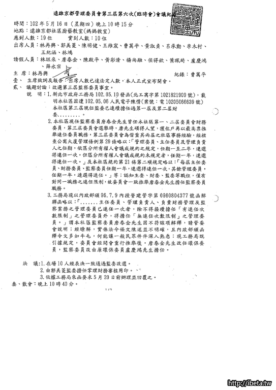 102.05.16 第三屆第6次管委會(臨時會)會議紀錄