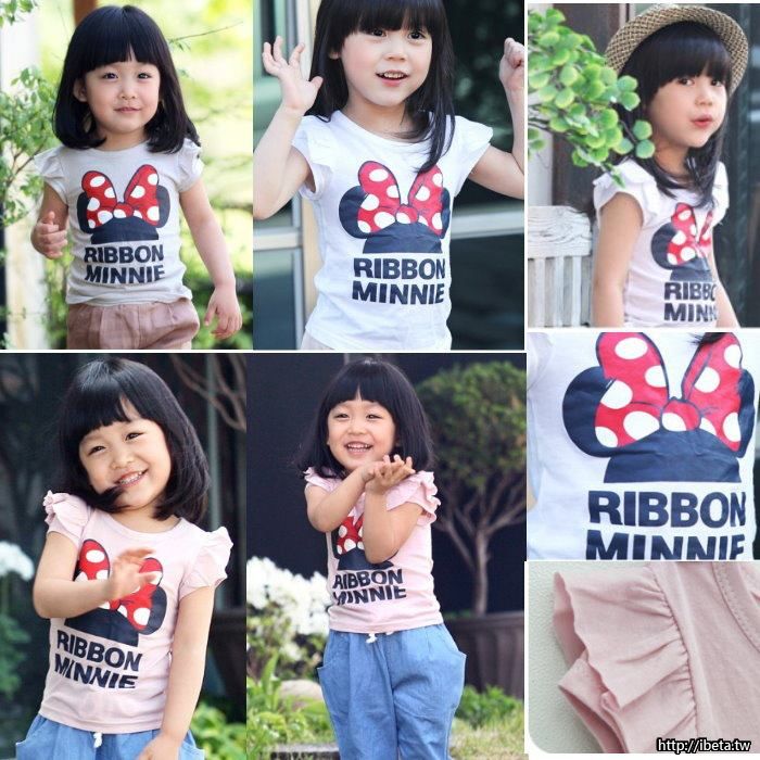 12.可愛蝴蝶結卡通上衣$140(粉100 130 灰90-130)
