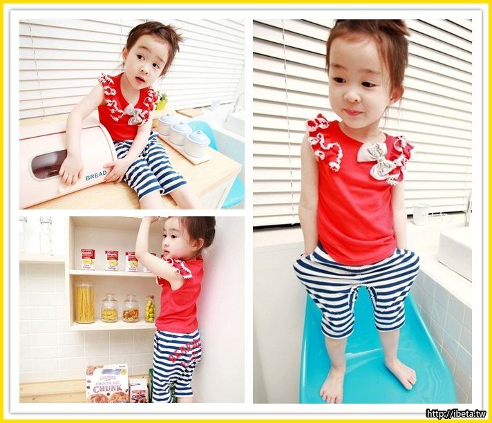45.女童條文蝴蝶結套裝$200(紅90 100 藍 90 100 110)