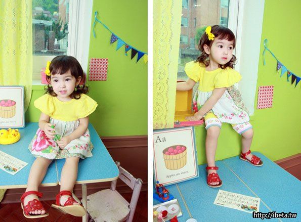 35.超Q 澎澎袖 裝大人春夏小洋裝$190(黃110 130 140)