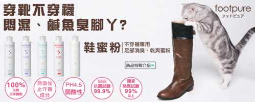 世界首創的Footpure鞋蜜粉,不同於一般白色鞋粉,運用彩妝級蜜粉技術製成的超細質地膚色粉